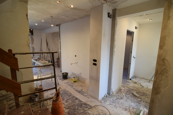Para la instalación de calefacción fue preciso abrir rozas en los suelos para la canalización. Durante esta fase, el techo del vecino de abajo sufrió algunos desperfectos de pintura (grietas) que hubo que arreglar al terminar, sin repercusión económica de ningún tipo para el cliente...