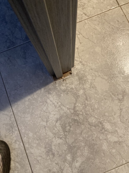 Sin embargo, en el suelo, el azulejo no tapa el ancho faltante.