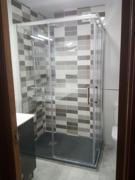 Hemos colocado una mampara abatible sobre plato de ducha de resina