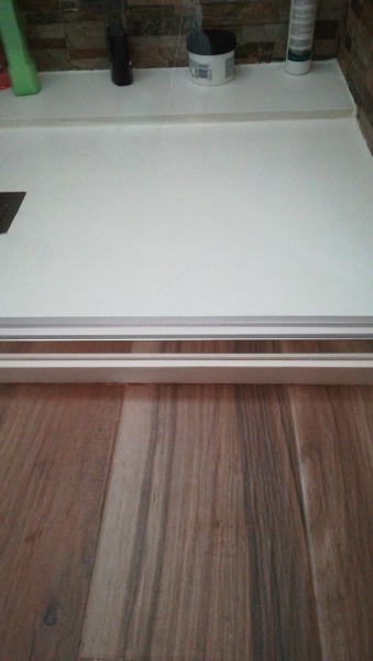 Al rato de ducharnos, sale un poco de agua por el perfil inferior, quedándose en la parte del plato que queda por fuera