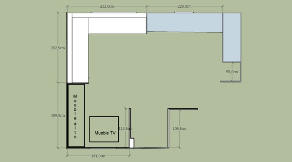 Hace tiempo que sigo a esta comunidad pero hasta ahora no me había atrevido a dar el paso de publicar nada. El caso es que recientemente me he comprado una casa prefabricada en el campo y estoy a vueltas con la distribución del salón.