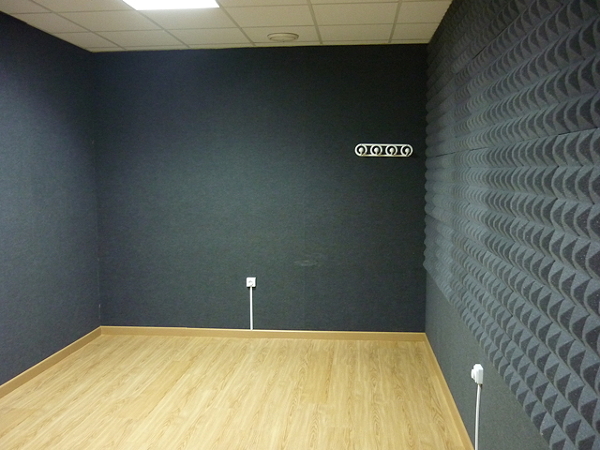 Si se trata solo de la adecuación acústica interior del local, no la insonorización de cara al exterior, ¿qué materiales serían necesarios? En la foto lo único que se ve es moqueta en las paredes y algunos paneles acústicos. ¿Es suficiente con esto?