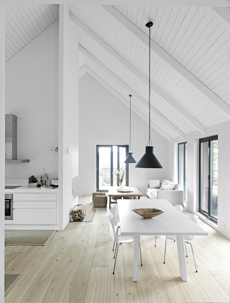 A simple vista parece suelo laminado no uniforme( significa que no repite patrones de dibujo, con junta biselada.