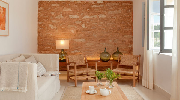 ¿Qué tipo de madera se ha utilizado para la balda de la pared de piedra?