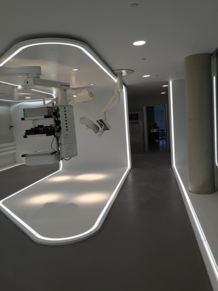 SUELOSEl material que mas se usa actualmente es el recubrimiento con polivinilo, se coloca soldándolo, sin costuras en todo el piso y 15cm a cada lado de la pared.Para los suelos de las salas de procedimientos menores se utiliza una variedad de materiales plásticos, duros sin costuras. Los suelos no deberían de ser porosos, pero si lo suficientemente rígidos para permitir su limpieza mediante agua o mediante aspiración húmeda.El suelo debería de ser a prueba de caídas por deslizamiento.
