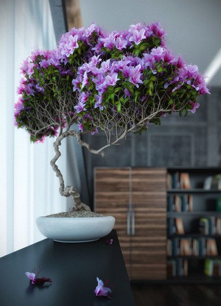 es una azalea combertida en un bomsai