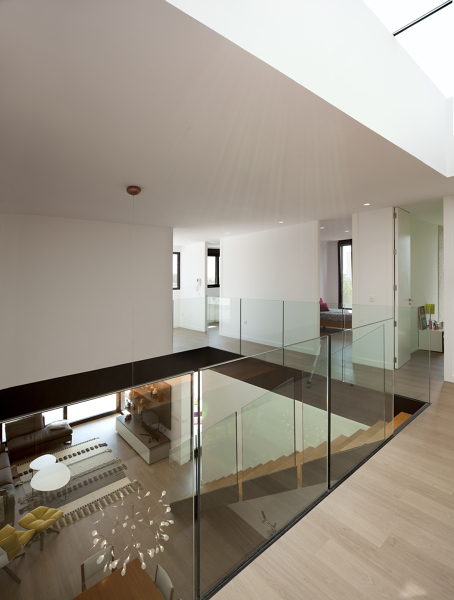 El material que hemos colocado para la solería tanto en planta baja como planta primera es un suelo laminado en un solo tablón color tipo roble francés acabado mate. Se ha utilizado el mismo material también en los cuartos húmedos.