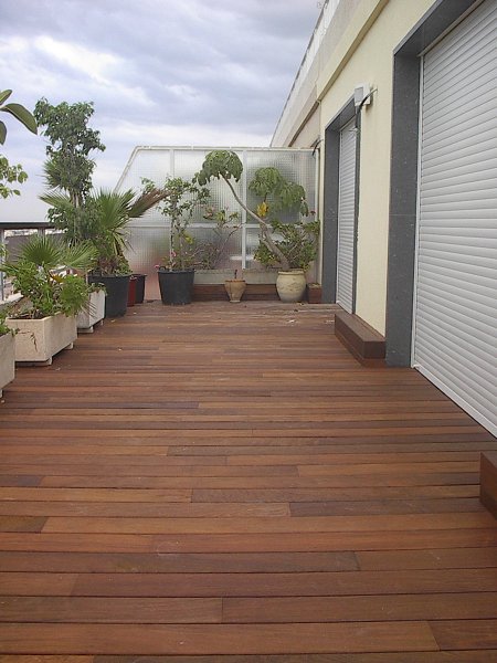Respecto a si habíamos colocado gres imitación madera en alguna terraza, lamento decirte que no, en baños y otras estancias si.