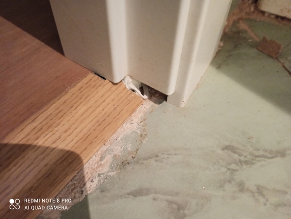Estoy de acuerdo contigo en que el perfil de transición no está en su sitio... en la primera foto se ve que el solado laminado queda corto y ello deja el perfil fuera del sitio normal, pero vamos, que se podría haber ajustado mucho mejor mejor esa zona del perfil o se puede cajear el cerco lateral... pero en una reforma rara vez veo a nadie que aplique CTE para ventilación dejando esa holgura inferior, sería discutible el marco y ámbito de aplicación.