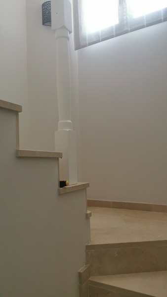 tendrá una rosca en el suelo, pegada al escalón con alguna pasta para que no se suelte.