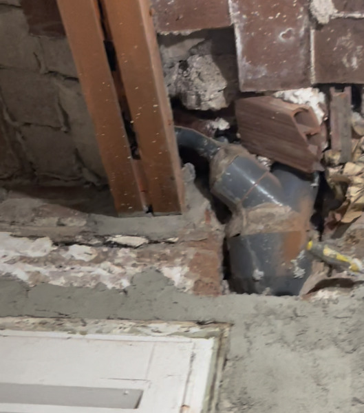 Gracias de nuevo Alejandro... Anexo foto de la instalación del forjado superior, pero bajo mi baño la boca de conexión al bajante es igual. Se aprecia como la tubería de descarga del plato de ducha pasa sobre una viga de madera. La mía tb pasa por allí, se supone que nueva y mejor instalada, pero no puedo tomar fotos. Con el paso de los años (y los escapes) la viga se pudrió y hubo que reforzarla con perfiles de acero, la de abajo igual... Ves espacio para pasar la tubería por debajo de la viga y no por encima, haciendo un ángulo para conectar al sumidero?. Haciendo pequeña perforación en la bóveda para bajar verticalmente y luego el codo... El wáter está directamente sobre el bajante, ducha a la izquierda y lavamanos a la derecha.