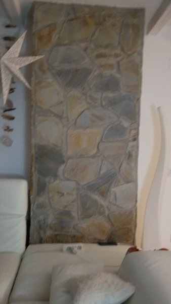Querría presupuesto para recubrir una columna interior (ubicada en el salón) de 0,42 de ancho x 0,30 de profundo con piedra, similar al que muestro en la foto de un vecino que lo tiene justo del estilo que quiero