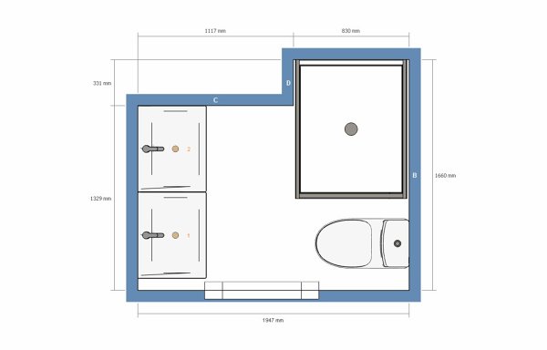 - Con esto, te cabrían dos lavabos enfrentados de 70 cmx45cm. cada uno. De este modo podríais estar dos al mismo tiempo en el lavabo.