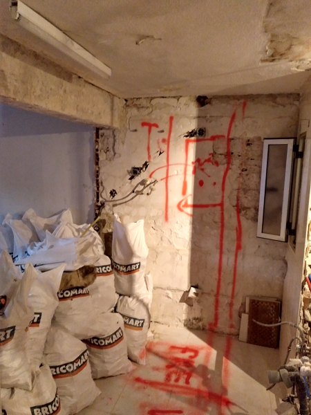 Valoro la posibilidad, a parte, de tirar una pared que divide cocina y salón, para poner mas almacenaje en la cocina, y dar mayor espacio visual (la cocina es de unos 4 metros cuadrados). Esa pared tiene las llaves del agua encima de la puerta y enchufe de tv, por lo que creo que lleva bastante cableado. A parte de un radiador por la parte de la cocina que sería para quitarlo simplemente.