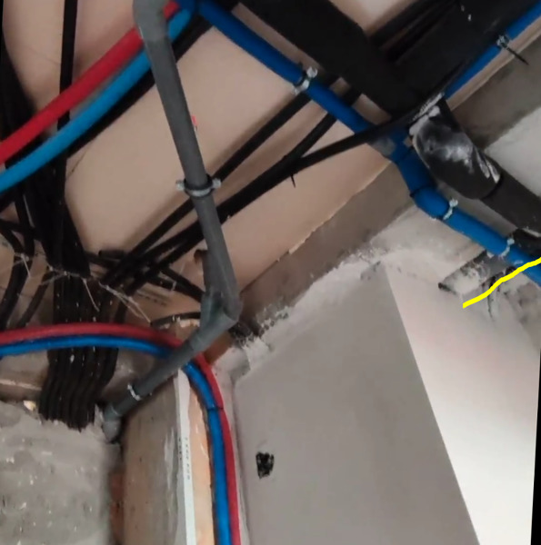 Hola, compramos un piso nuevo que es un duplex. En la planta baja de nuestro piso pasan los desagües de la planta alta del duplex del vecino, tal y como se ve en las fotos. Para más inri, este hecho es fruto de una redistribución en plano del vecino, que no se me comunicó cuando compramos el piso. Descubrimos el problema por ruidos en nuestro pasillo cuando el vecino usa su baño o ducha. El constructor abrió el techo y en teoría aisló acústicamente pero el problema persiste. Mi pregunta es si es legal que esas tuberías atraviesen mi pasillo en mi propio techo. Adjunto una foto para mayor claridad.