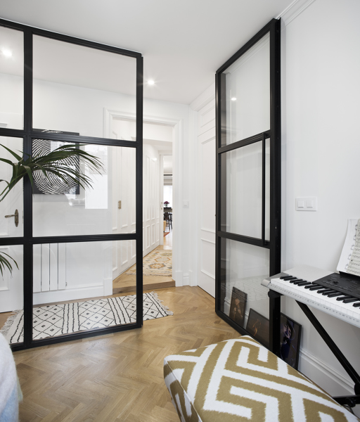 Hola Olga,solemos fabricar ese tipo de separadores de ambiente puertas batientes y correderas estilo industrial.Normalmente se fabrican en acero al carbono(hierro) van soldados con las soldaduras vistas o pulidas y lacado en polvo al horno.