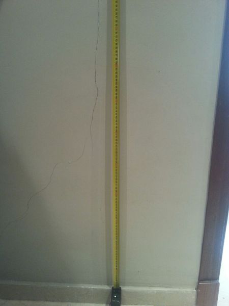 Otra grieta se ha formado cerca de un pilar y es como si hiciera palanca en un muro divisoria porque en la extremidad mas lejana desde pilar la grieta es mas ancha y mas cerca del pilar se encuentra mas finita pero bien evidente y larga cogiendo todo el muro en longitud en la parte baja del muro y en altura cerca del pilar.