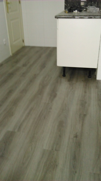 la tarima flotante de vinilo va muy bien para este tipo de suelos ya que no tiene juntas y no le afecta el agua ni las manchas de grasas, ya que una cocina se friega muy amenudo