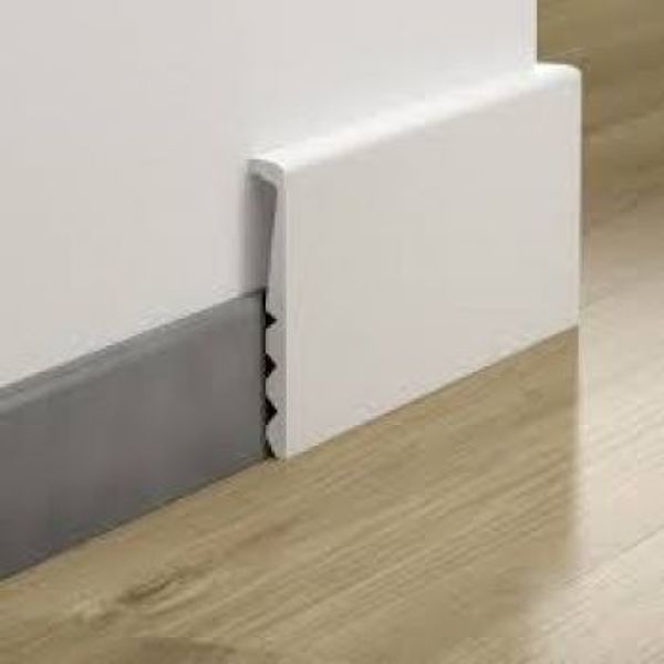 ...también puede optar, si el mobiliario, puertas, etc... se lo permite, por colocar un rodapié de DM lacado o de PVC que cubra el actual rodapié cerámico (adjunto dos ejemplos, fuentes: Pinterest y Bauhaus)