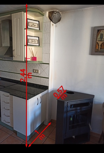 Quiero poner un tabique de 1,00x2,44 m. tal como sale en la imagen para poder poner la estufa en ese rincón sin que me fastidie los muebles no el yeso.