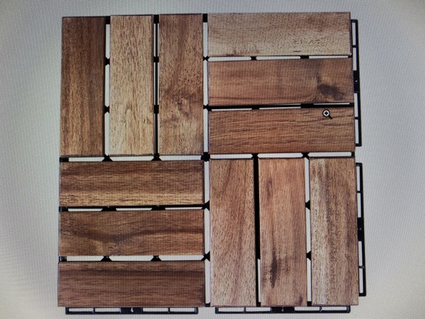 En Leroy Merlin existen unas losetas de 30x30 en acacia que sale sobre los 21€ m2.