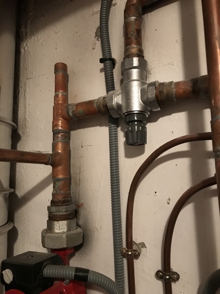 Te refieres a esta válvula. Tiene unos números pero no se su equivalencia en grados. Esta esta situada justo en la salida de los tubos de la caldera.