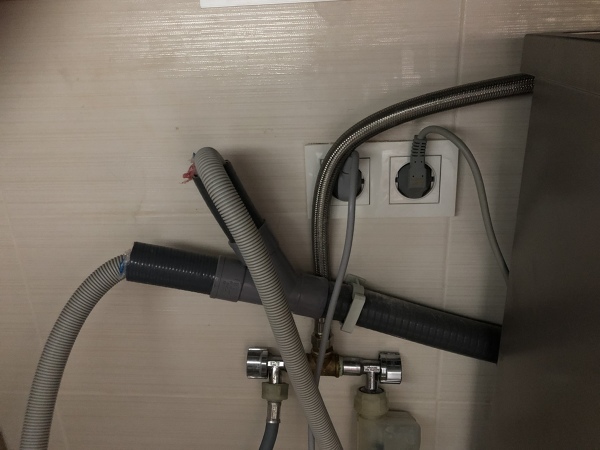 Esta muy riesgosa las toma de electricidad tendrás q anularlas y subirlas a30cm más altas así no hay riesgo de corto circuito y la instacion de desagüe está muy mal hay q hacerla de nuevo saludos