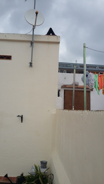...a ver si así se lo explico mejor, con un sencillo paint sobre su fotografía, salvo que se pueda entender otra consideración si el peto de cubierta tuviese una buena altura, la línea a partir de la cual se debería medir 100 cm es la línea rojo, por lo que la chimenea debería ser lo que le dibujo en color verde.