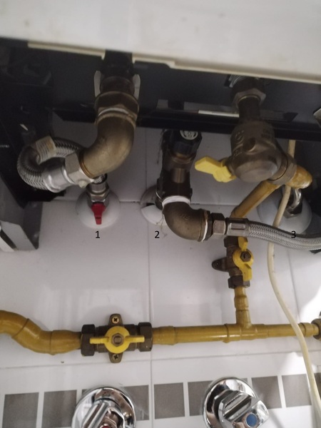 Hola, tengo un termo de gas con 3 latiguillos y aparte la tubería que le suministra el gas y sé que una es para la caliente y otra para la fría pero la otra no sé para que es. Adjunto foto para que se vea más claro.