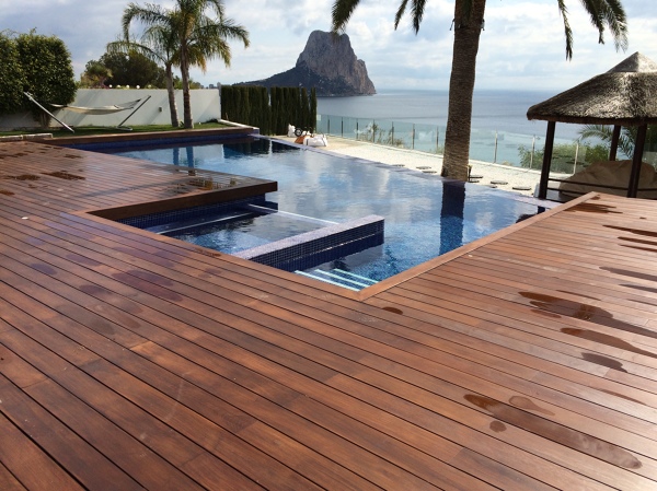 Tarima técnica de exteriores, estéticamente queda estupendo y no requiere ningún tratamiento ni mantenimiento posterior.