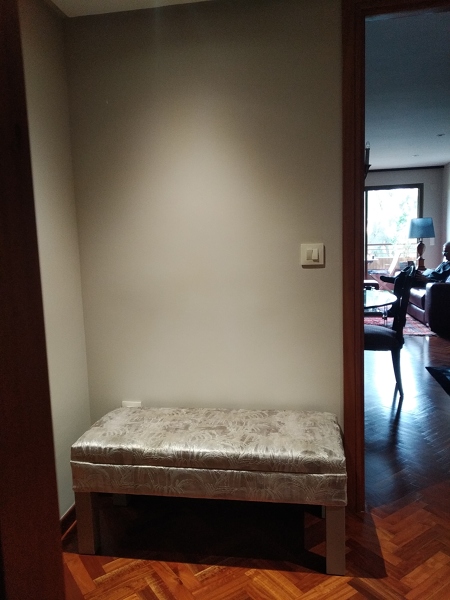 Hola.Quería pedirte consejo en cuanto a qué alfombra poner pues el recibidor tiene forma irregular. No sé cómo centrarla ni como de ancha/larga debería ser para que quede proporcionada. El banco mide 1x40 y va en la pared de 115. Las patas del banco son las de la primera foto, aluminio. Las cambié. Gracias