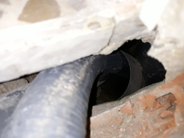 Según la fotografía, No está bien instalada esa tubería, necesita un pasa muros para protegerla y después tomar con mortero el pasa muros y rellenar el hueco. La tubería debe estar sellada cuando se introduce en otra tubería o elemento de la instalación.