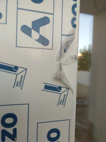 Para evitar que, ante la amenaza de no cobrar el 50% restante, le retiren la ventana y en dos días vuelva a tener una ventana "nueva", para evitar la tentación de que sea la ventana lijada, documéntelo, un par de fotografías con fecha en las que se vea a que altura está el daño, es decir, ponga un metro para que salga en las fotos y, si cuando vuelva a tener la ventana a esa misma altura tiene la más mínima sospecha que el acabado no es correcto y que pueden haberla "apañado", no deje que instalen.
