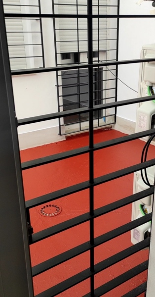 Os pongo fotos del patio dónde se ven ambas ventanas del vecino, unas de ellas llega hasta el suelo. Gracias