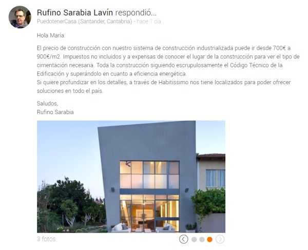 El precio de construcción con nuestro sistema de construcción industrializada puede ir desde 700€ a 900€/m2. Impuestos no incluidos y a expensas de conocer el lugar de la construcción para ver el tipo de cimentación necesaria. Toda la construcción siguiendo escrupulosamente el Código Técnico de la Edificación y superándolo en cuanto a eficiencia energética.